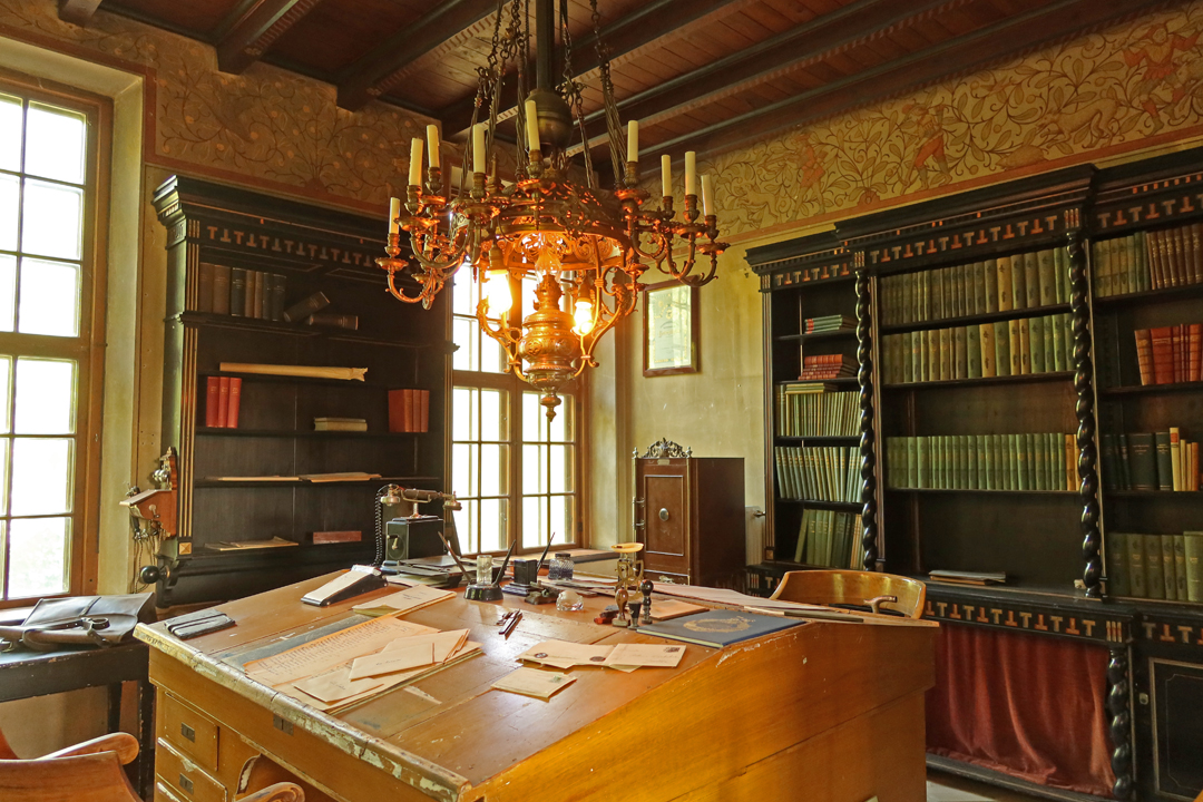 Brucebo and its servants’ cottage were built in the National Romantic spirit. The house has large windows to view the surrounding forest and sea and to provide light into the atelier. The interiors are livable but were never completely finished—William died of a heart attack before the house was completed and Karolina never had the heart to finish the house without him. Even so, it almost feels like the pair still live in the house which is filled with their furniture, belongings, sculptures, and paintings.
